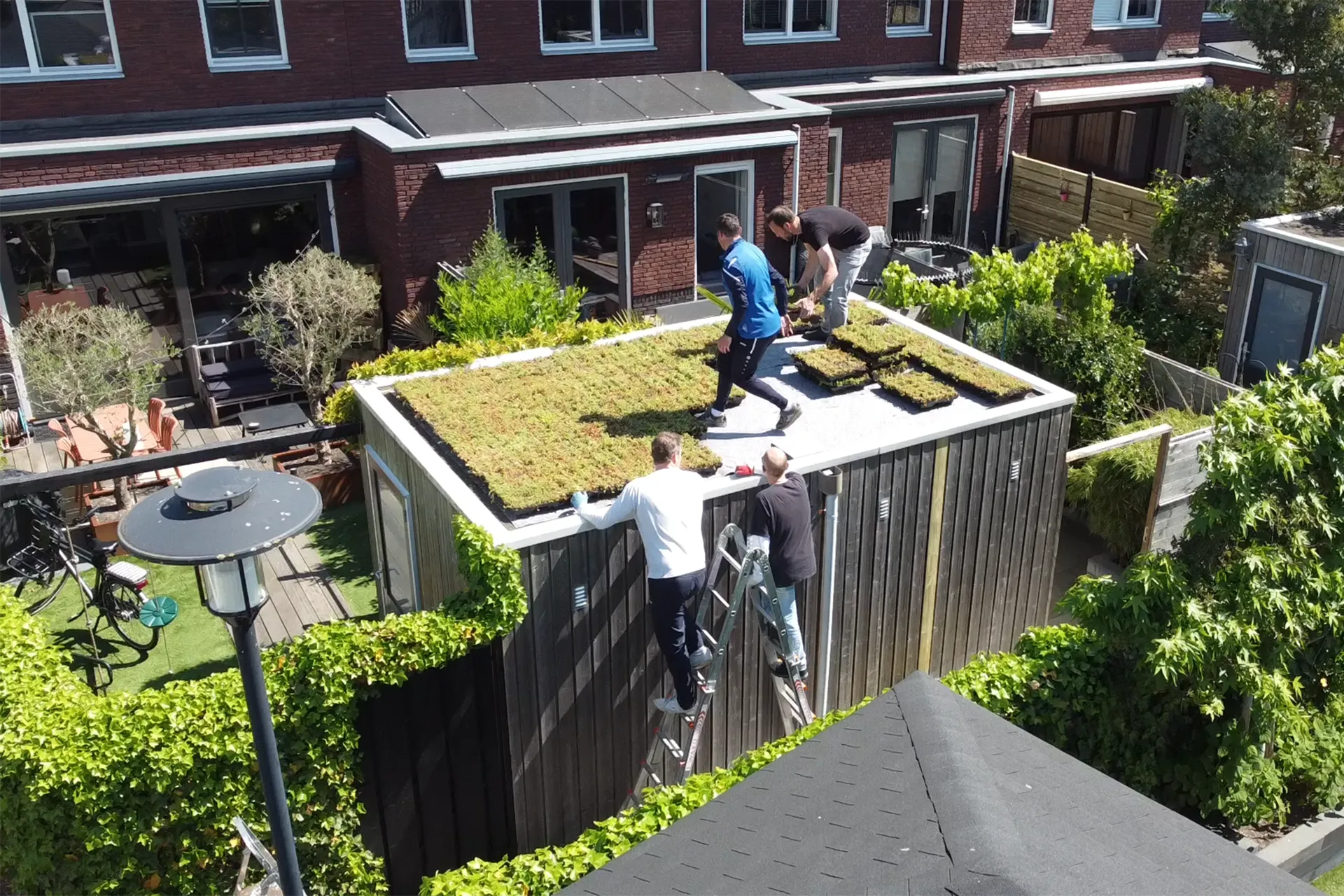 Dank engagierter Pflanzteams und einer finanziellen Unterstützung der Wasserbehörde (Hoogheemraadschap van Rijnland) erhielten die ersten Dächer ihr grünes Kleid.